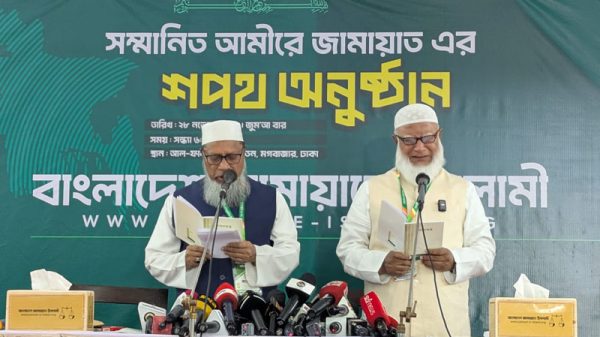 ১১/২৯/২৫ ১০:৩১ পূর্বাহ্ণ ২০২৬, ২০২৭ এবং ২০২৮-এ তিন বছরের জন্য জামায়াতে ইসলামীর আমীর হিসেবে শপথ নিলেন ডা. শফিকুর রহমান। শুক্রবার রাজধানীর মগবাজারের আল… বিস্তারিত...